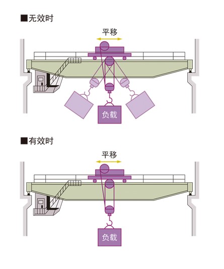 內(nèi)置了防搖擺功能, 可抑制平移時(shí)貨物的晃動(dòng)。 由于負(fù)載不會晃動(dòng), 可更快地放下,因此有利于縮短運(yùn)行周期。