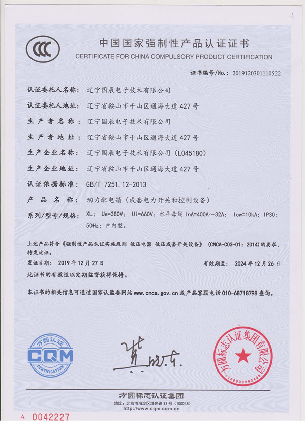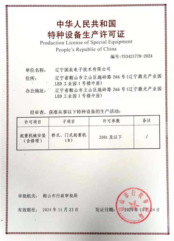 遼寧國辰電子技術(shù)有限公司產(chǎn)品許可證書